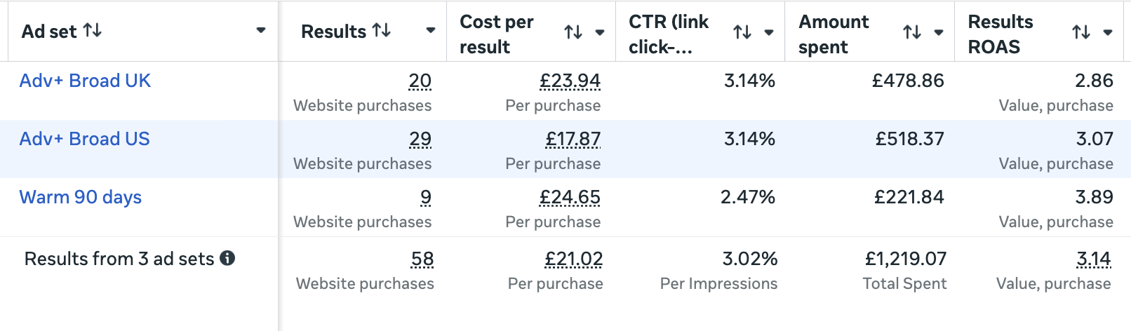 58 Low Ticket Sales | 3.02% Ave CTR | 3.14 ROAS